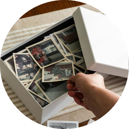 完成した動画は、デジタルフォトフレームに収めた現物でお届けします。フレームの中で、思い出の映像がやさしく動き出します。